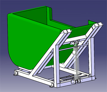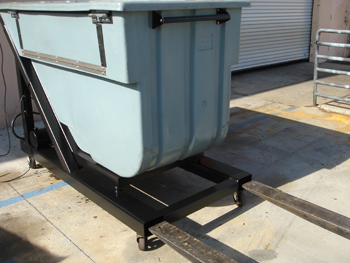 - Forklift tilting hopper bin.